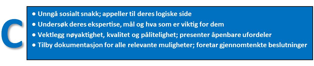 de diagonalt motsatte stilene som D – S og I – C er svært forskjellige. En C er lite mottakelig for en kommunikasjonsform som passer til I, en S vil